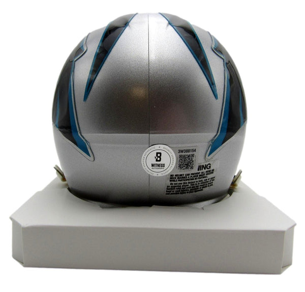 Julius Peppers Autographed/Signed Carolina Panthers Mini Helmet. This mini helmet is authenticated by Beckett and includes their Tamper-proof Hologram Sticker.
