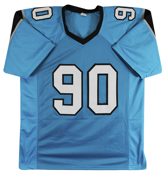 This Autographed Teal Pro Style Jersey with the inscription of "HOF 2024, 2002 DROY" has been Personally Signed by Julius Peppers of the Carolina Panthers. This item is 100% Authentic to include a hologram by Beckett Authentication Services. This item will come with an affixed Beckett Authentication Services (BAS) authentication sticker, which includes a scannable QR code to verify authenticity. Please note that Beckett no longer provides serial-numbered COA cards, and the attached BAS sticker will serve as the complete authentication for this item. This is a BAS Witnessed Protection Program item which means a Beckett Authentication Service representative was present when this item was being signed. We conducted an autograph signing with Julius Peppers where multiples of the same item were signed. While the photographs are representative of this item, the size, placement and strength of the signature may vary. Each item is hand signed, therefore, each autograph is unique. This item can be verified through BAS Witnessed. This is a X-Large sized, non-branded, custom-stitched Jersey.