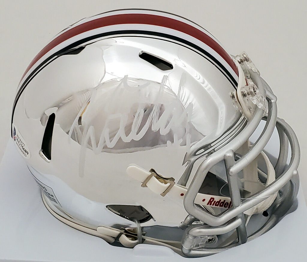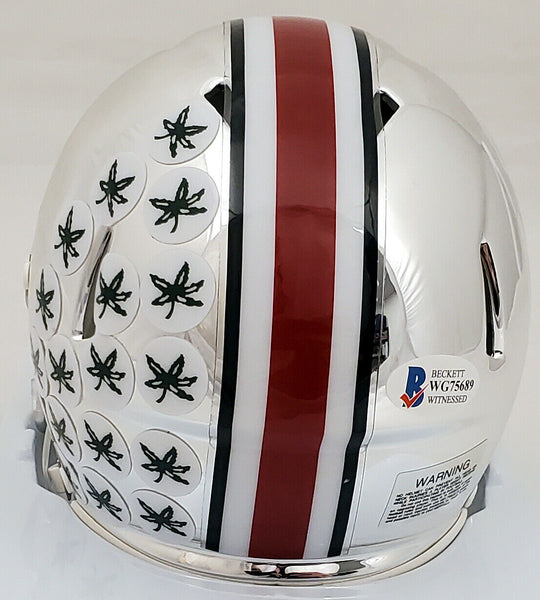 JUSTIN FIELDS AUTOGRAPHED OHIO STATE CHROME SPEED MINI HELMET BECKETT 189798