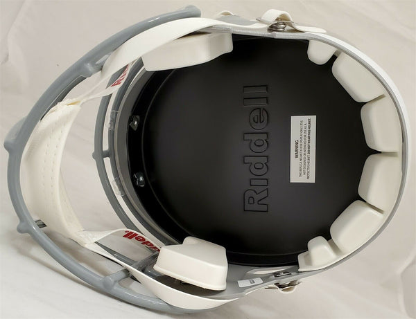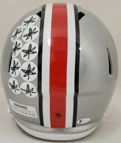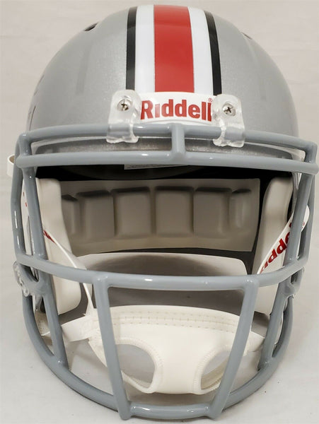 This is an Ohio State Buckeyes Silver Replica Speed Full Size Helmet that has been hand signed by Justin Fields. This item has been certified authentic by Beckett (BAS) and comes with their tamper-proof sticker and matching certificate of authenticity.