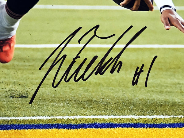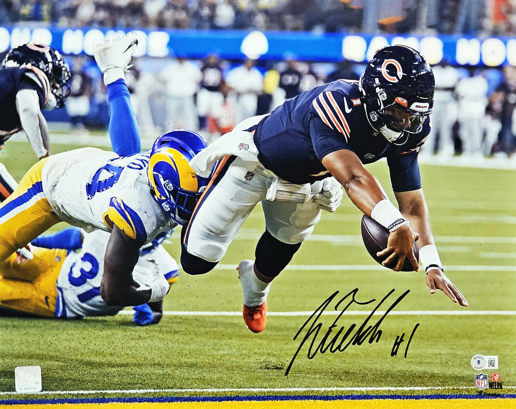 This is a 16x20 Photo that has been hand signed by Justin Fields. This item has been witnessed and certified authentic by Beckett Authentication (BAS) and comes with their tamper-proof witness sticker.