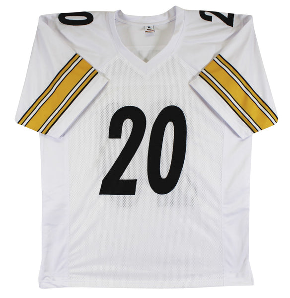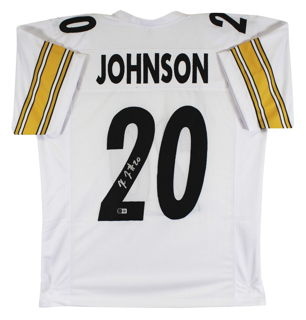 This Autographed White Pro Style Jersey has been Personally Signed by Kaleb Johnson of the Pittsburgh Steelers. This item is 100% Authentic to include a hologram by Beckett Authentication Services. This item will come with an affixed Beckett Authentication Services (BAS) authentication sticker, which includes a scannable QR code to verify authenticity. Please note that Beckett no longer provides serial-numbered COA cards, and the attached BAS sticker will serve as the complete authentication for this item. This is a BAS Witnessed Protection Program item which means a Beckett Authentication Service representative was present when this item was being signed. We conducted an autograph signing with Kaleb Johnson where multiples of the same item were signed. While the photographs are representative of this item, the size, placement and strength of the signature may vary. Each item is hand signed, therefore, each autograph is unique. This item can be verified through BAS Witnessed. This is a X-Large sized, non-branded, custom-stitched Jersey.