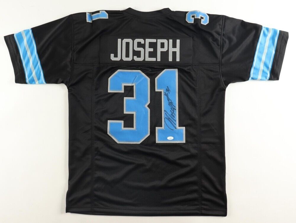 Custom on-field style jersey. Everything sewn on, size XL. Hand-signed by Kerby Joseph. The autograph(s) includes an official James Spence Authentication (JSA) hologram and QR Code card for authenticity purposes.Authentication: JSA Hologram with QR Code card