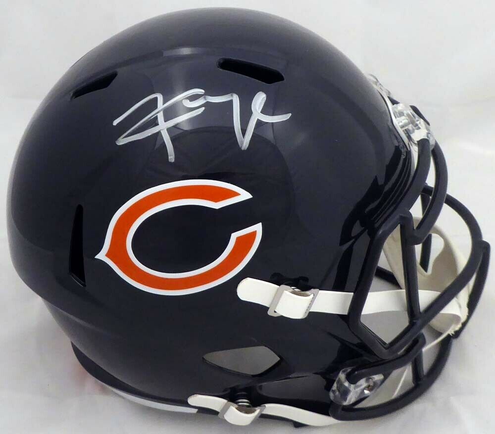 This is a Chicago Bears Full Size Speed Replica helmet that has been hand signed by Khalil Mack. It has been authenticated by Beckett (BAS) and comes with their sticker and matching certificate of authenticity.