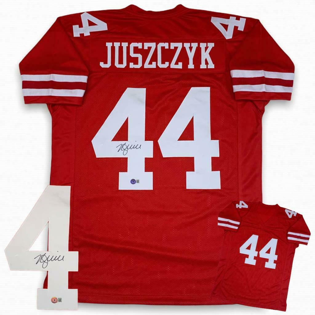 This signed item is brand new without tags or logos. This jersey is custom sewn in a size 52 (XL). All the letters and numbers are sewn on! This item will make a great gift or a great addition to any collection at an AFFORDABLE PRICE! ATHLETE: Kyle Juszczyk ITEM: Custom Sewn Jersey AUTHENTICATION: This item comes with a Beckett Certificate of Authenticity and serial #'ed hologram affixed to the item. To ensure authenticity, the hologram can be reviewed online. This process helps to ensure that the product purchased is authentic and eliminates any possibility of duplication or fraud. NOTE: All of our autographed jerseys are custom jerseys, unless otherwise noted. Our custom jerseys are NON-BRANDED, have NO logos, NO tags, NO patches, NO emblems. All letters and numbers are SEWN-ON. The non-branded jerseys are made specifically for the player(s) to sign, for collectible purposes.