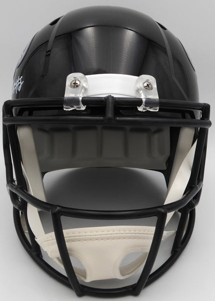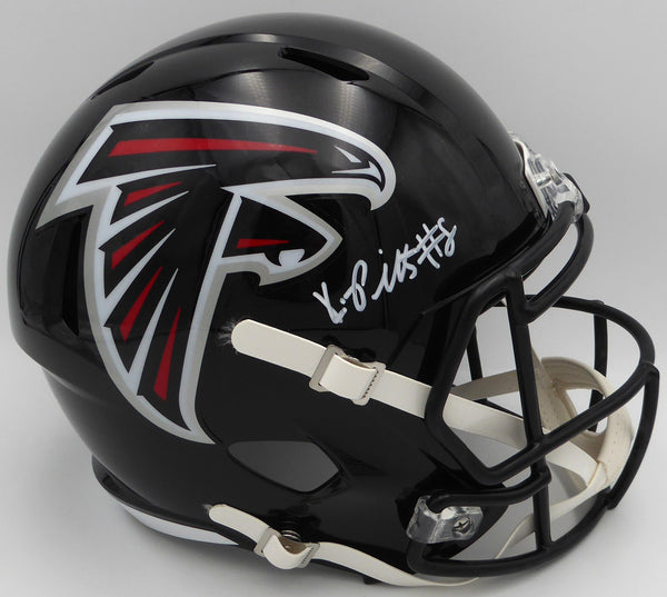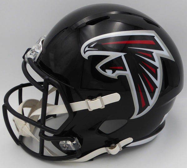 This is a Speed Replica Full Size Helmet that has been hand signed by Kyle Pitts. This item has been witnessed and certified authentic by Beckett Authentication (BAS) and comes with their tamper-proof witness hologram.