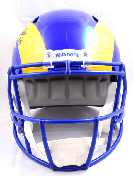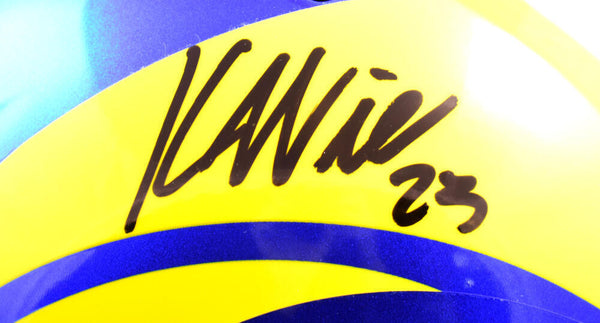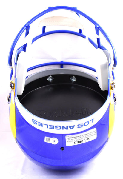Kyren Williams Autographed Los Angeles Rams F/S Speed Helmet-Beckett W Hologram *Black This is a Kyren Williams of the Los Angeles Rams hand autographed Riddell Full Size Speed Replica Helmet. This item has a Beckett Witnessed Authentication, which comes with a numbered sticker hologram and a QR code for verification. You can view this item on the Beckett Authentication website and it shows when and where the item was signed. It was signed either at a public autograph appearance or a private signing. This is a stock photo of the item. Although you may not receive this exact item, the item you receive is virtually identical, brand new, and in great shape.
