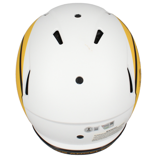 This Los Angeles Rams Lunar Eclipse Authentic Speed helmet has been personally hand-signed by Kyren Williams and Puka Nacua. It comes with an individually numbered, tamper-evident hologram from Beckett Authentic for Kyren and Fanatics for Puka. To ensure authenticity, the hologram can be reviewed online. This process helps to ensure that the product purchased is authentic and eliminates any possibility of duplication or fraud.