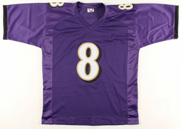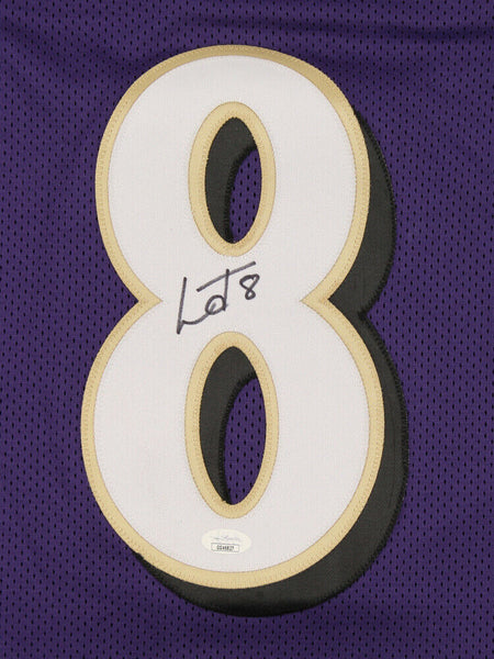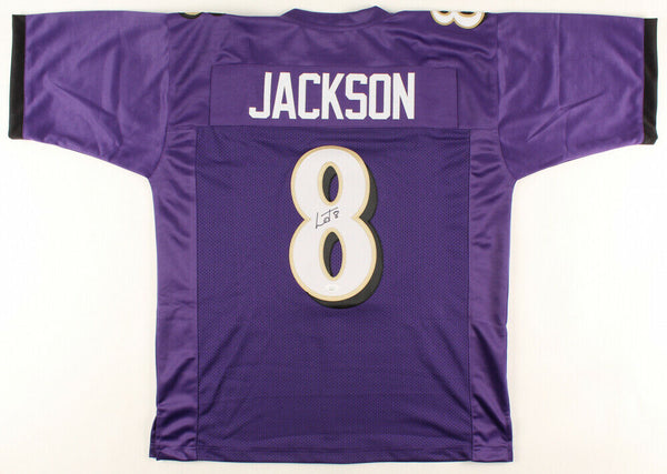 Offered is a custom replica football jersey, roughly sized L-XL. The jersey features professionally sewn letters and numbers. The jersey has no official logos, emblems, or tags and is not affiliated with a professional sports organization. This signature on the item is JSA certified and it is intended to be sold as an autographed sport collectible.