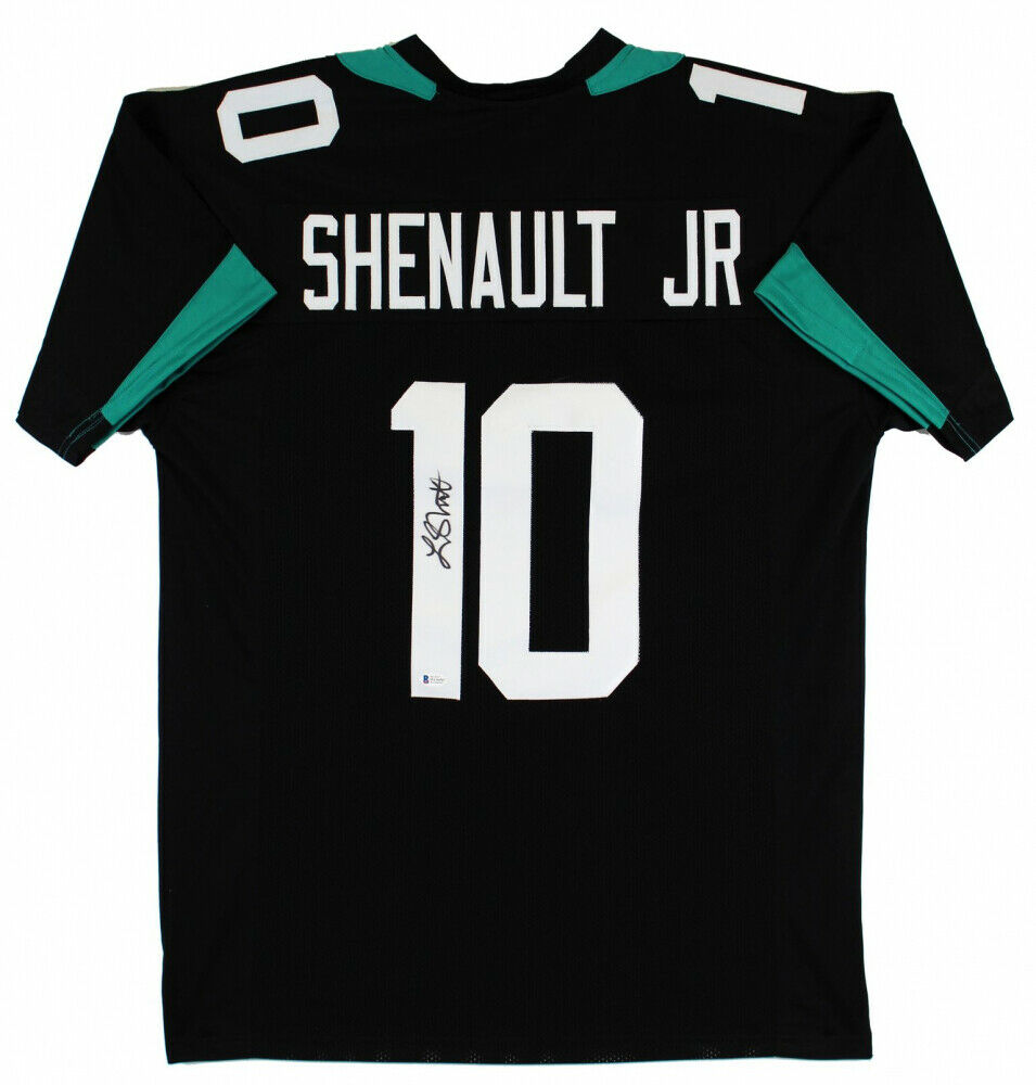 Custom on-field style jersey. Everything sewn on, size XL. Hand-signed in black felt-tip pen by Laviska Shenault Jr, The lot / autograph(s) includes an official Beckett Authentication Services serially-numbered hologram and matching COA for authenticity purposes. The signing of this item was witnessed by Beckett.Authentication: Beckett COA