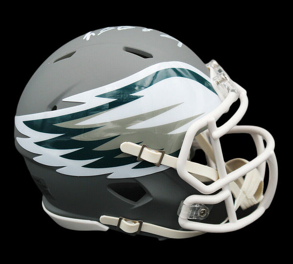 A Philadelphia Eagles Speed AMP NFL Mini Helmet hand signed by LeGarrette Blount. The item and signature are in excellent condition. LeGarrette is a former running back who played in the NFL for nine seasons. Blount rushed for over 1,000 yards in each of his two seasons in junior college. He then committed to the Oregon Ducks football program as a junior, for the 2008 season. That year, he ran for over 1,000 yards and scored a school-record 17 touchdowns. He entered the NFL as an undrafted free agent with the Tennessee Titans in 2010, but joined the Tampa Bay Buccaneers before the start of the 2010 NFL season. He also played for the Pittsburgh Steelers in 2014, between his two stints with the New England Patriots, followed by the Philadelphia Eagles in 2017 and the Detroit Lions in 2018. AUTHENTICATION: The item is accompanied by a Certificate of Authenticity - Serial Numbered and Databased Hologram - Picture of LeGarrette from the signing
