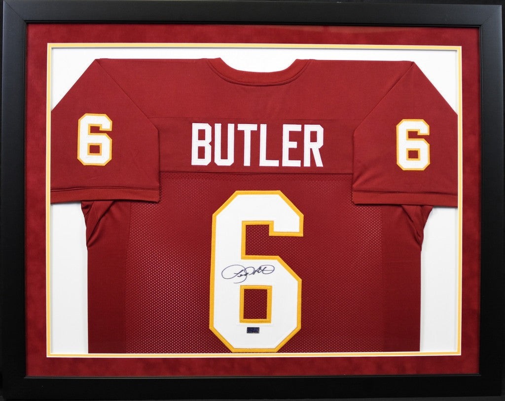 Leroy Butler, former All-American safety for the Florida State Seminoles, has hand signed this custom jersey at a private signing. Jersey is size XL and all letters/numbers are sewn-on. It comes professionally framed in a black wood frame and double matted in Florida State colors. This item comes with a certificate of authenticity (COA) from Signature Sports Marketing, one of the leaders in the industry. You will receive a paper COA along with matching serial-numbered holograms.Item pictured may not be the exact item you will receive. It will be similar quality, and we guarantee your satisfaction.