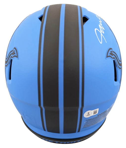 This Autographed Alternate Rave Riddell Authentic Full Size Speed Proline Helmet has been Personally Signed by Jameson Williams of the Detroit Lions. This item is 100% Authentic to include a hologram by Beckett Authentication Services. This item will come with an affixed Beckett Authentication Services (BAS) authentication sticker, which includes a scannable QR code to verify authenticity. Please note that Beckett no longer provides serial-numbered COA cards, and the attached BAS sticker will serve as the complete authentication for this item. This is a BAS Witnessed Protection Program item which means a Beckett Authentication Service representative was present when this item was being signed. We conducted an autograph signing with Jameson Williams where multiples of the same item were signed. While the photographs are representative of this item, the size, placement and strength of the signature may vary. Each item is hand signed, therefore, each autograph is unique. This item can be verified through BAS Witnessed.