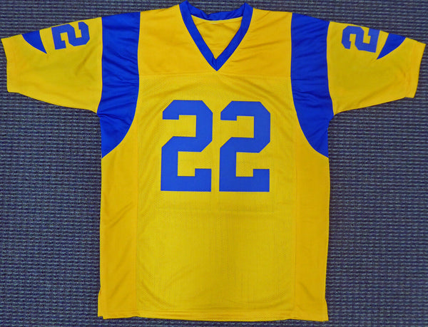 This is a yellow Jersey that has been hand signed by Marcus Peters. This item has been certified authentic by Beckett Authentication (BAS) and comes with their sticker and matching certificate of authenticity. This is a custom jersey with sewn in name and numbers, but no major brand. A It is approximately size XL.