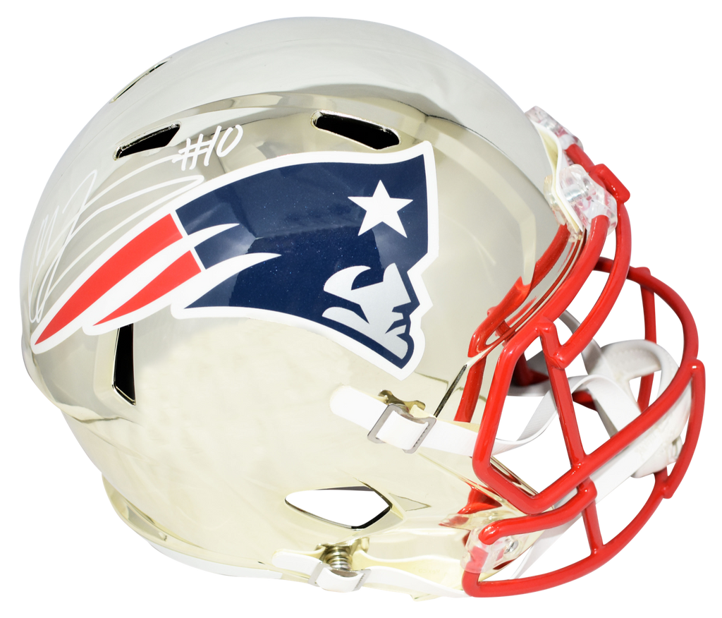 Mac Jones, former quarterback for the New England Patriots, has hand signed this Patriots Riddell Speed Chrome full-size replica helmet at a private signing. This item is authenticated by Beckett Authentication Services and was signed in the presence of one of their representatives. Their tamper-evident hologram featuring a QR code and serial number is on the item. The authenticity can be verified online by entering the serial number or scanning the QR code.Item pictured may not be the exact item you will receive. It will be similar quality, and we guarantee your satisfaction.