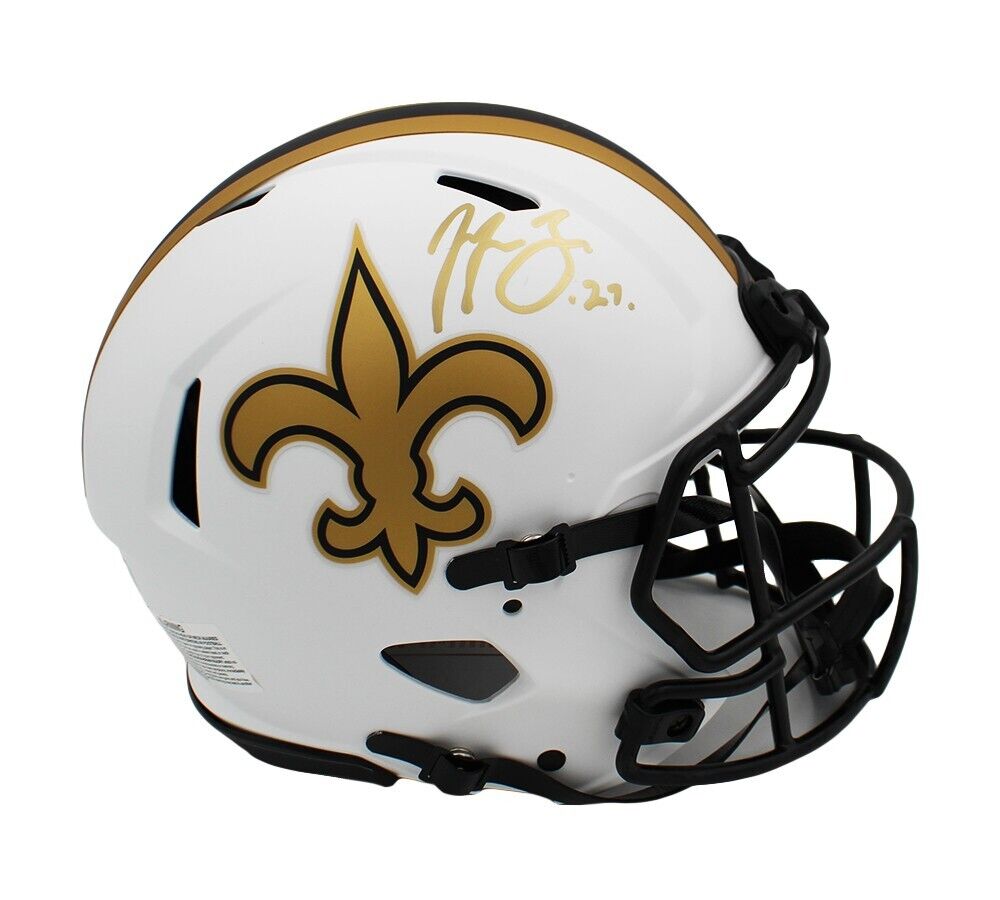 A New Orleans Saints Speed Authentic Lunar NFL Helmet hand signed by Malcolm Jenkins. The item and signature are in excellent condition. Malcolm is a form professional football player who played for the New Orleans Saints and the Philadelphia Eagles. He is a 2x Super Bowl Champion and a 3x Pro Bowler. AUTHENTICATION: The item has been tagged with a Beckett Serial Numbered and Databased Hologram.