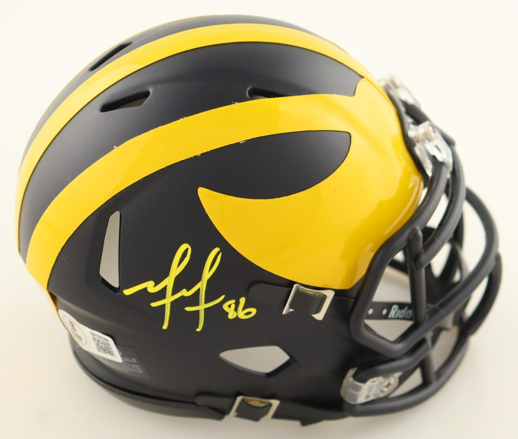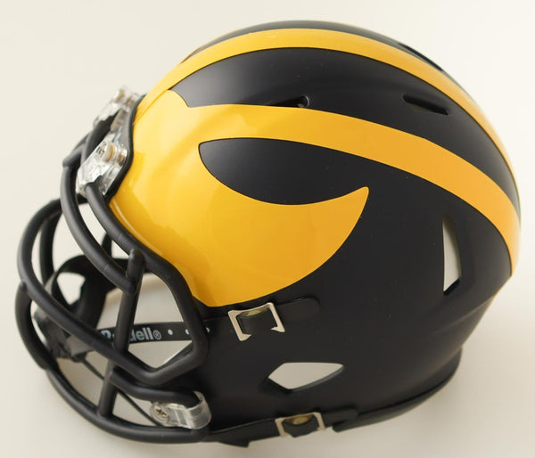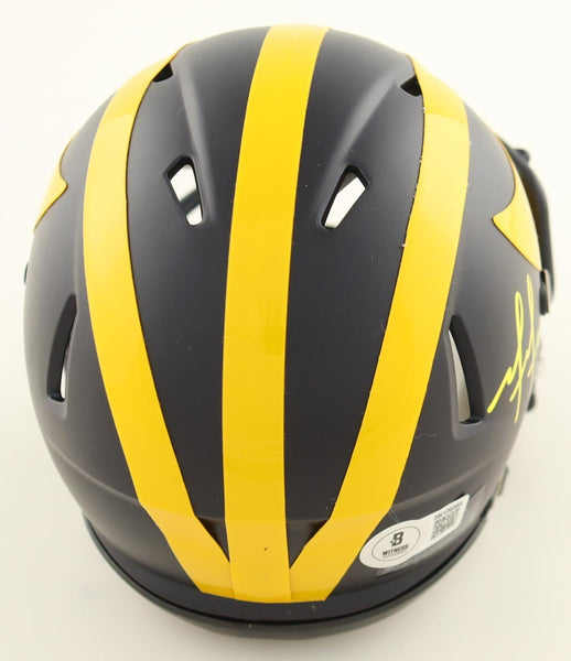 Riddell Michigan Wolverines Speed mini helmet has been hand-signed by Mario Manningham.The autograph includes an official Beckett Authentication Services serially numbered hologram and QR Code card for authenticity purposes. The signing of this item was witnessed by Beckett.Authentication: Beckett Hologram with QR Code cardCheck out all the items in our Friendly Confines Collectibles store, Thanks for looking.