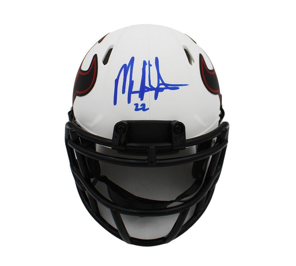 A Houston Texans Speed Lunar NFL Mini Helmet hand signed by Mark Ingram. The item and signature are in excellent condition. Mark was a First Round Draft Pick (2011), a Pro Bowler (2014), and has numerous awards from his time at Alabama. AUTHENTICATION: The item is accompanied by a Beckett Certificate of Authenticity - Beckett Serial Numbered and Databased Hologram