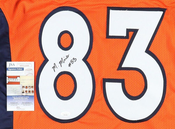 Custom on-field style jersey. Everything is sewn on, size Adult XL. Hand-signed by Marvin Mims Jr.The autograph(s) includes an official James Spence Authentication (JSA) "Signature Debut" hologram and COA. "Signature Debut" is the autographed memorabilia equivalent to a rookie card. The JSA definition of a "Signature Debut" is as follows: "Any item that is autographed and received by JSA prior to the last game of the signer's official rookie season.Authentication: JSA COAShop our ebay store / Friendly Confines Collectibles for thousands of different autographed jerseys