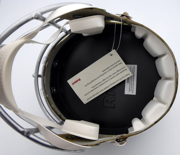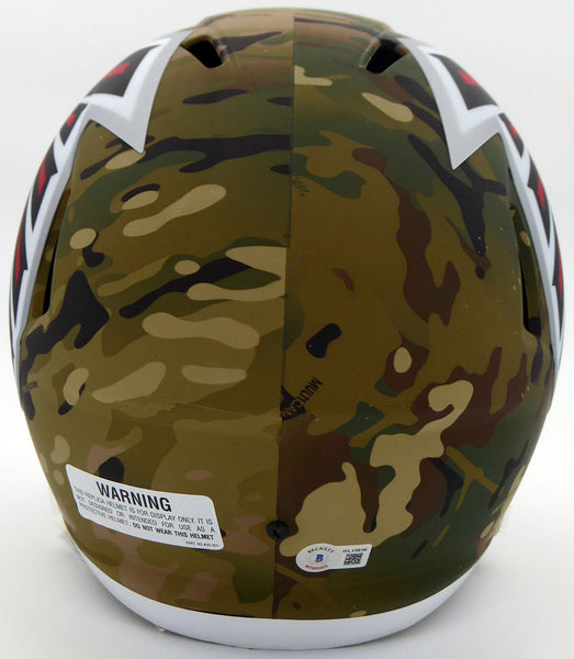 This is an Atlanta Falcons Camo Full Size Replica Speed Helmet that has been hand signed by Matt Ryan. Because each Camo helmet is hand-dipped using water-transfer technology there may be slight imperfections. This item was inscribed "2016 NFL MVP." This item has been certified authentic by Beckett Authentication (BAS) and comes with their tamper-proof QR Code sticker that can be verified on the Beckett-authentication.com.