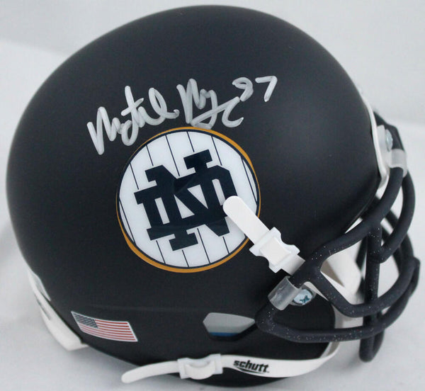 Michael Mayer Autographed Notre Dame Schutt Blue Mini Helmet-Beckett W Hologram *Silver This is a Hand Autographed Helmet of Michael Mayer of The University of Notre Dame Fighting Irish. This is a Schutt Football Blue Alternate Mini Helmet. This item has a Beckett Witnessed Authentication, which Comes with a Beckett #'ed hologram and a generic Beckett COA. You can view this item on the Beckett website and it shows when and where the item was signed. It was signed either at a public autograph appearance or a Private Signing. This is a stock photo of the item. Although you may not receive this exact item, the item you receive is virtually identical and brand new in great shape.