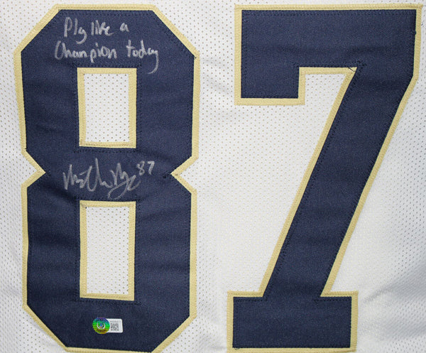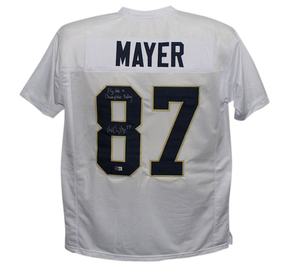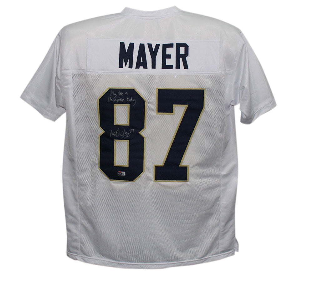Michael Mayer Signed College Style White XL Jersey Play Like Champion BAS 37438 The number in the listing title is just an inventory sku for our records and is not the authentication number. The item pictured is a stock photo unless otherwise noted. This is a custom college style white XL jersey with sewn on name and numbers that was personally autographed by Michael Mayer with Play like a Champion inscription. Includes a certificate of authenticity from Beckett Authentication Services (BAS) and Denver Autographs.