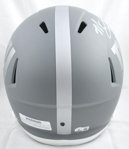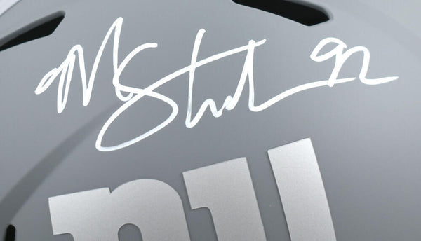 Michael Strahan Autographed New York Giants F/S Slate Speed Helmet-Beckett W Hologram *White This is a hand Autograph of Michael Strahan of the New York Giants on a Riddell Football Full Size Slate Speed Replica Helmet. This item has a Beckett Witnessed Authentication, which comes with a numbered hologram and a QR code for verification. You can view this item on the Beckett Authentication website and it shows when and where the item was signed. It was signed either at a public autograph appearance or a private signing. This is a stock photo of the item. Although you may not receive this exact item, the item you receive is virtually identical and brand new in great shape.