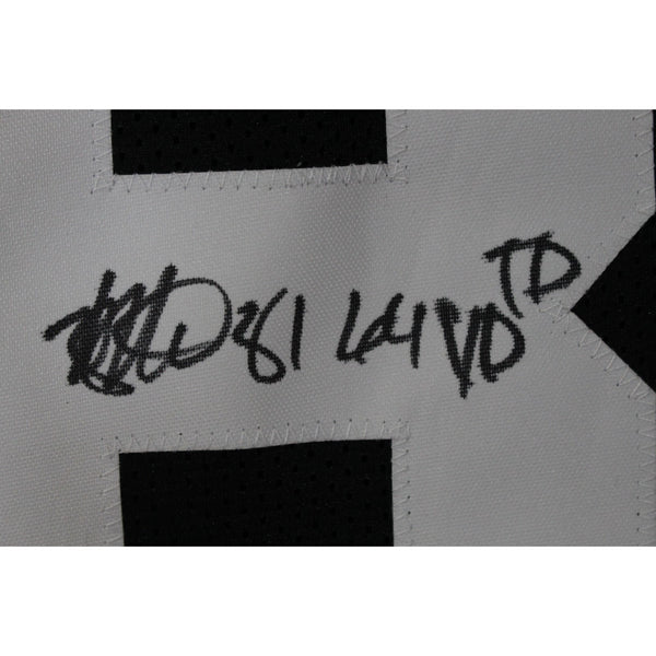 The number in the listing title is just an inventory sku for our records and is not the authentication number. The item pictured is a stock photo unless otherwise noted. This is a College Style Black Size XL Jersey with sewn on numbers that was personally autographed by Michael Westbrook includes "64 YD TD" inscription. Includes a certificate of authenticity from Beckett Authentication Services (BAS) and Denver Autographs.FREE SHIPPING within the USA on orders over $10!
