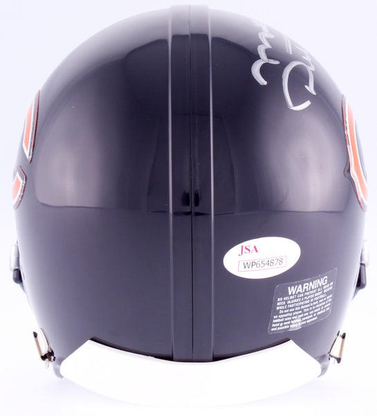Chicago Bears mini-helmet. Hand-signed in silver paint pen by Mike Ditka (HOF). The lot / autograph(s) includes an official James Spence Authentication (JSA) hologram and matching COA for authenticity purposes. The signing of this item was witnessed by JSA.Authentication: JSA COA