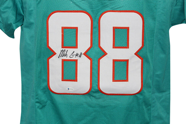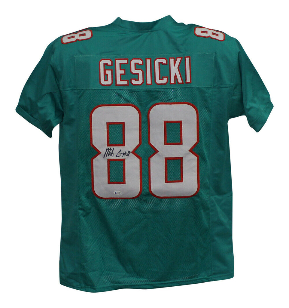 Mike Gesicki Autographed/Signed Pro Style Teal XL Jersey BAS 33198 The number in the listing title is just an inventory sku for our records and is not the authentication number. This is a custom pro style teal XL jersey with sewn on name and numbers that was personally autographed by Mike Gesicki. Includes a certificate of authenticity from Beckett Authentication Services (BAS) and Denver Autographs.