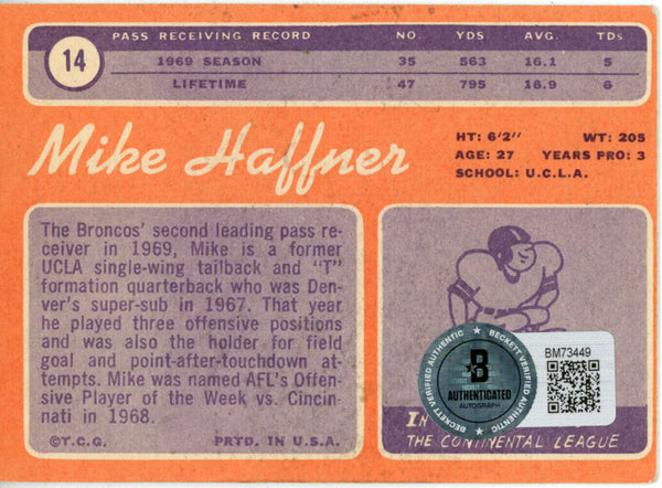 Mike Haffner Autographed 1970 Topps #14 Trading Card Beckett 44806