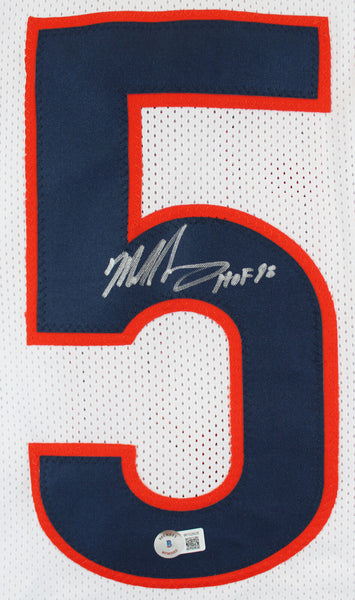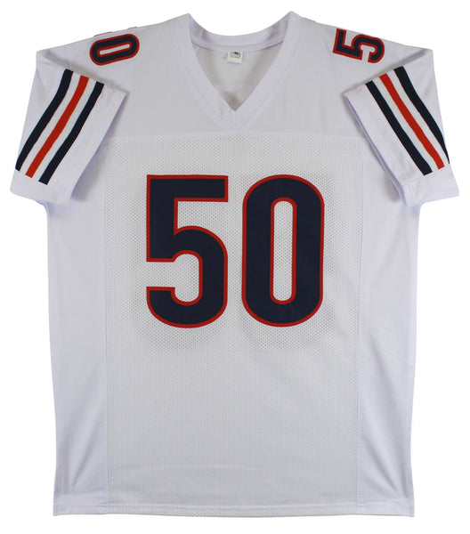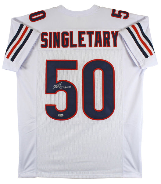 This Autographed White Pro Style Jersey with the inscription of "HOF 98" has been Personally Signed by Mike Singletary of the Chicago Bears. This item is 100% Authentic to include a hologram by Beckett Authentication Services. This item may come with the new Beckett Authentication hologram that has a scannable QR code rather than the traditional COA. If you would like to have a COA, you are welcome to reach out to Beckett for a printed certification once you receive your item. This is a BAS Witnessed Protection Program item which means a Beckett Authentication Service representative was present when this item was being signed. We conducted an autograph signing with Mike Singletary where multiples of the same item were signed. While the photographs are representative of this item, the size, placement and strength of the signature may vary. Each item is hand signed, therefore, each autograph is unique. This item can be verified through BAS Witnessed. This is a X-Large sized, non-branded, custom-stitched Jersey.