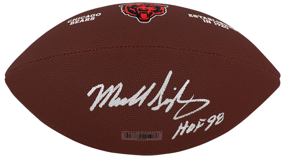 Mike Singletary signed Wilson Chicago Bears brown logo football with 'HOF 98' inscription. Item comes with a Fanatics Authentic tamper-proof numbered hologram and Certificate of Authenticity which can be verified online.