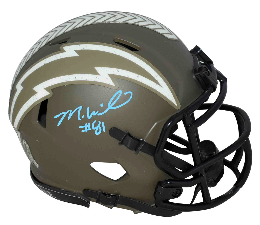 Mike Williams, wide receiver for the Los Angeles Chargers, has hand signed this Chargers Riddell Speed Salute to Service mini helmet at a private signing. This item is authenticated by Beckett Authentication Services and was signed in the presence of one of their representatives. Their tamper-evident hologram featuring a QR code and serial number is on the item. The authenticity can be verified online by entering the serial number or scanning the QR code.Item pictured may not be the exact item you will receive. It will be similar quality, and we guarantee your satisfaction.