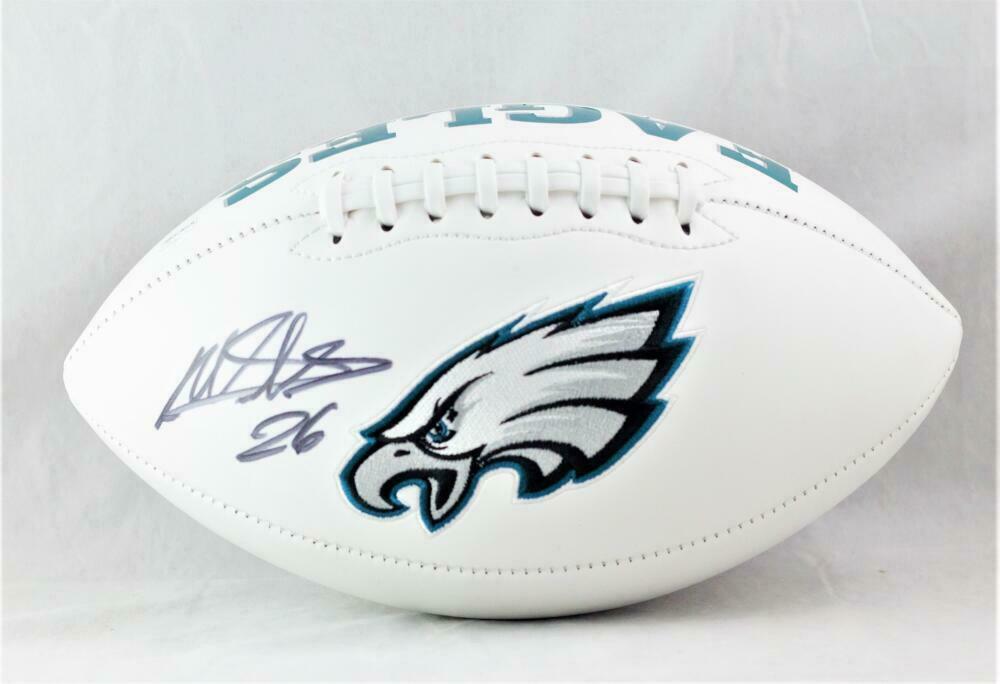 Miles Sanders Autographed Philadelphia Eagles Logo Football - JSA W Auth *Black This is a hand autograph of Miles Sanders on a Philadelphia Eagles Logo Football. This item has a James Spence Witness Protection Authentication, which comes with a numbered sticker and a matching JSA Certificate of Authenticity. You can view this item on the SpenceLOA website, it shows when and where the item was signed. It was signed either at a public autograph appearance or a private signing. This is a stock photo of the item. Although you may not receive this exact item, the item you receive is virtually identical and brand new in great shape.