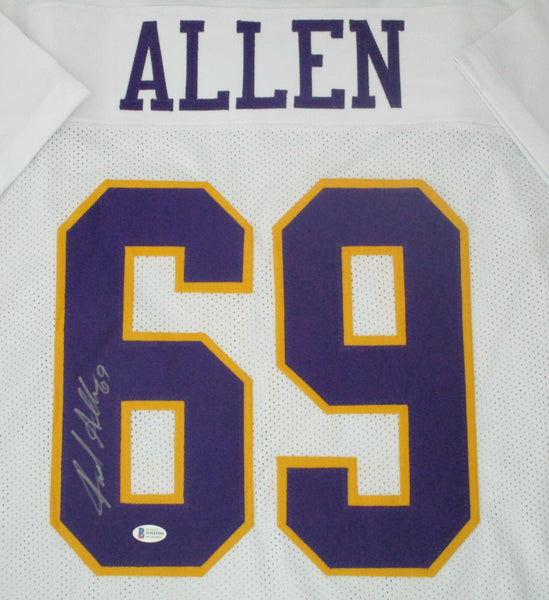 Custom Replica Jersey hand signed by Minnesota Vikings legend JARED ALLEN. The signature is in Silver paint pen. This jersey was signed at a private signing with us and would make a great addition to any Allen or Vikings collection! Jersey is size XL and all letters and numbers are sewn in. This autograph is guaranteed to be 100% authentic and will include a COA from Beckett Authentication.