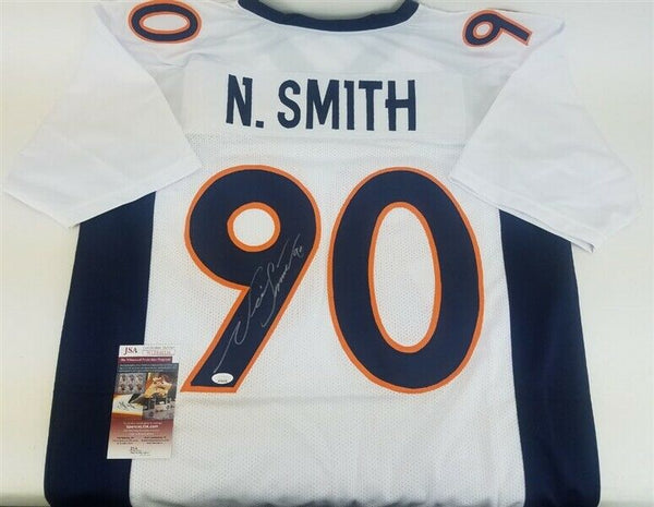 Custom on-field style jersey. Everything is sewn on, size XL. Hand-signed in silver paint pen by Neil Smith (Kansas City Chiefs, Denver Broncos). The lot / autograph(s) includes an official James Spence Authentication (JSA) hologram and matching COA for authenticity purposes. The signing of this item was witnessed by JSA.Authentication: JSA COA Check out all the items in our Friendly Confines Collectibles store, Thanks for looking.