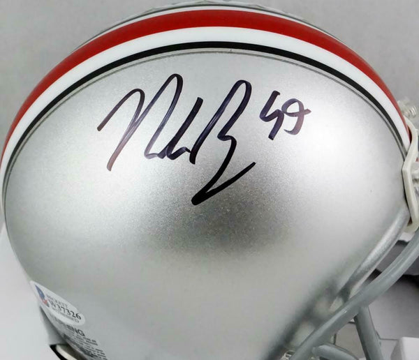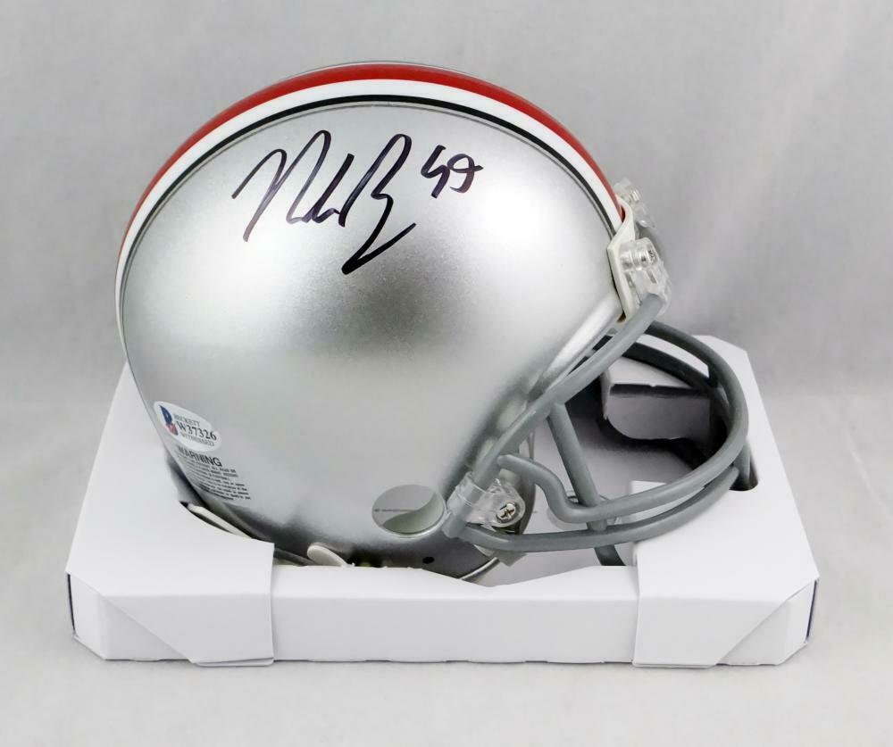 Nick Bosa Autographed Ohio State Buckeyes Silver Mini Helmet- Beckett Auth *Black This is a hand autographed mini helmet of Nick Bosa of the Ohio State University. This is a Riddell Football Speed Mini helmet. This item has a Beckett Authentication, which comes with a Beckett numbered sticker and a matching Certificate Of Authenticity. You can view this item on the Beckett Authentication website and it shows when and where the item was signed. It was signed either at a public autograph appearance or a private signing. This is a stock photo of the item. Although you may not receive this exact item, the item you receive is virtually identical and brand new in great shape.