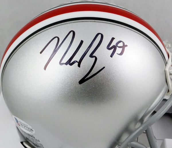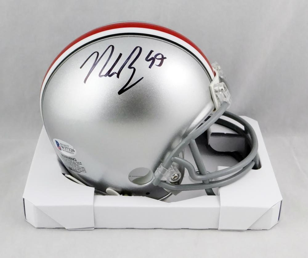 Nick Bosa Autographed Ohio State Buckeyes Silver Mini Helmet- Beckett Auth *Black This is a hand autographed mini helmet of Nick Bosa of the Ohio State University. This is a Riddell Football Speed Mini helmet. This item has a Beckett Authentication, which comes with a Beckett numbered and a matching Certificate Of Authenticity. You can view this item on the Beckett Authentication website and it shows when and where the item was signed. It was signed either at a public autograph appearance or a private signing. This is a stock photo of the item. Although you may not receive this exact item, the item you receive is virtually identical and brand new in great shape.