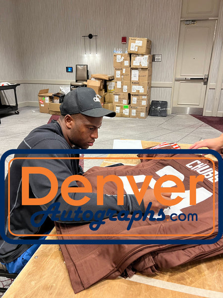 The number in the listing title is just an inventory sku for our records and is not the authentication number. The item pictured is a stock photo unless otherwise noted. This is a Pro Style Brown size XL jersey with sewn on numbers that was personally autographed by Nick Chubb. Includes a certificate of authenticity from Beckett Authentication Services (BAS) and Denver Autographs.FREE SHIPPING within the USA on orders over $10!