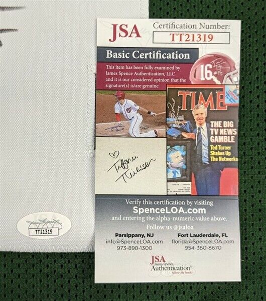 This autographed jersey has been personally hand-signed by Nick Mangold of the New York Jets. This autograph is certified by James Spence Authentication (JSA). It comes with the numbered hologram and matching Certificate of Authenticity.Custom on-field style jerseys are a more affordable option for autograph seekers. These jerseys do not have any brand name or tags and are made in the Philippines. They feature stitched on names and numbers and are made to look very similar to the on-field jerseys that the players wear. These custom jerseys are very commonly used in the memorabilia industry.