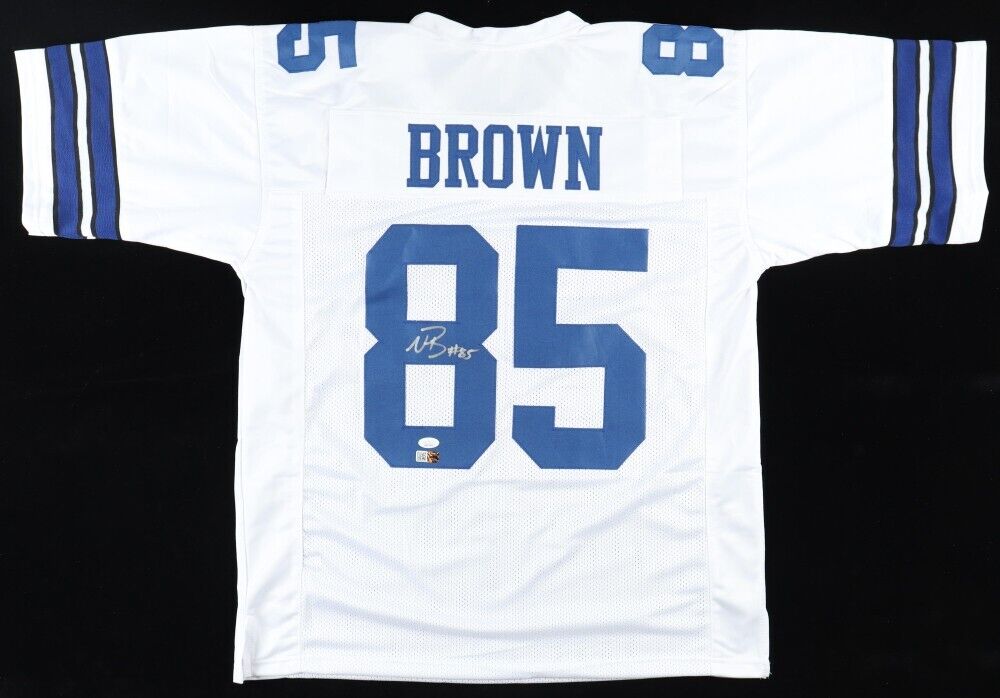 This autographed jersey has been personally hand-signed by Noah Brown of the Dallas Cowboys. This autograph is certified by James Spence Authentication (JSA). It comes with the numbered hologram and matching Certificate of Authenticity.Custom on-field style jerseys are a more affordable option for autograph seekers. These jerseys do not have any brand name or tags and are made in the Philippines. They feature stitched on names and numbers and are made to look very similar to the on-field jerseys that the players wear. These custom jerseys are very commonly used in the memorabilia industry.