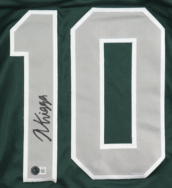 Custom on-field style jersey with everything sewn on, size XL. Jersey has been hand-signed by Noah Knigga. Knigga and his family clarified their surname is pronounced kuh-nay-ga.The autograph includes an official Beckett Authentication Services serially numbered scannable hologram and QR Code card for authenticity purposes. The signing of this item was witnessed by Beckett.Authentication: Beckett Scannable Hologram with QR Code cardCustom on-field style jerseys are a more affordable option for autograph seekers. These jerseys do not have any brand name or tags and are made in the Philippines. They feature stitched on names and numbers and are made to look very similar to the on-field jerseys that the players wear. These custom jerseys are very commonly used in the memorabilia industry.
