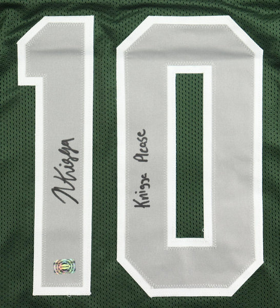 Custom on-field style jersey with everything sewn on, size XL. Jersey has been hand-signed and inscribed "Knigga Please" by Noah Knigga. Knigga and his family clarified their surname is pronounced kuh-nay-ga.The lot / autograph(s) includes an official Wilder Side of Sports scannable hologram for authenticity purposes.Authentication: Wilder Side of Sports Scannable HologramCustom on-field style jerseys are a more affordable option for autograph seekers. These jerseys do not have any brand name or tags and are made in the Philippines. They feature stitched on names and numbers and are made to look very similar to the on-field jerseys that the players wear. These custom jerseys are very commonly used in the memorabilia industry.