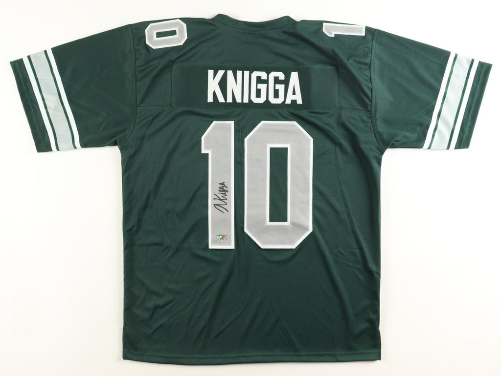 Custom on-field style jersey with everything sewn on, size XL. Jersey has been hand-signed by Noah Knigga. Knigga and his family clarified their surname is pronounced kuh-nay-ga.The lot / autograph(s) includes an official Wilder Side of Sports scannable hologram for authenticity purposes.Authentication: Wilder Side of Sports Scannable HologramCustom on-field style jerseys are a more affordable option for autograph seekers. These jerseys do not have any brand name or tags and are made in the Philippines. They feature stitched on names and numbers and are made to look very similar to the on-field jerseys that the players wear. These custom jerseys are very commonly used in the memorabilia industry.