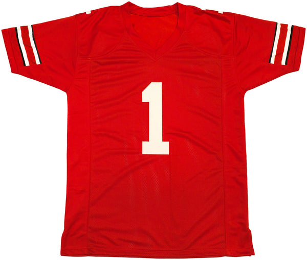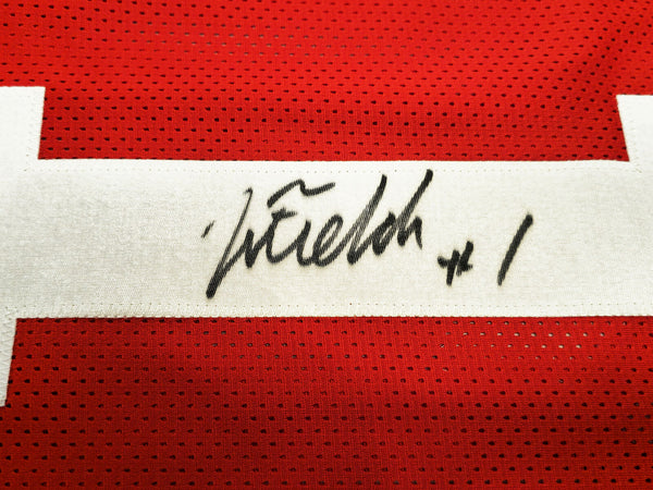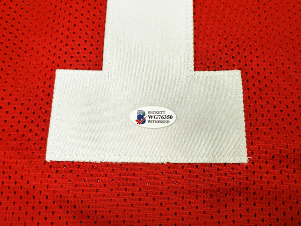 OHIO STATE BUCKEYES JUSTIN FIELDS AUTOGRAPHED RED JERSEY BECKETT WITNESS 230184