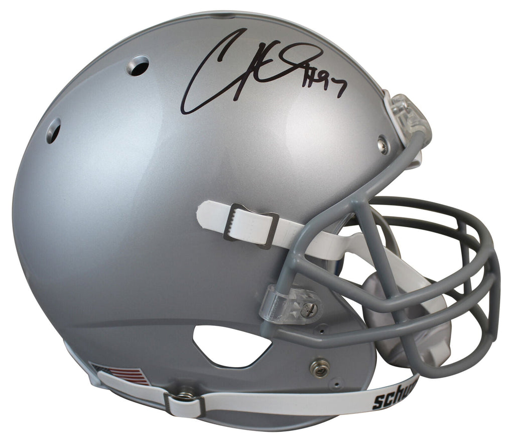 This Autographed Schutt Full Size Rep Helmet has been Personally Signed by Cam Heyward of the Ohio State Buckeyes. This item is 100% Authentic to include a hologram by Beckett Authentication Services. This item will come with the new Beckett Authentication hologram that has a scannable QR code rather than the traditional COA. If you would like to have a COA, you are welcome to reach out to Beckett for a printed certification once you receive your item. This is a BAS Witnessed Protection Program item which means a Beckett Authentication Service representative was present when this item was being signed. This is a stock item. We conducted an autograph signing with Cam Heyward and we have several of these available. The one you will receive will be of equal quality to the one pictured. This item can be verified through BAS Witnessed.
