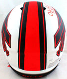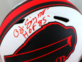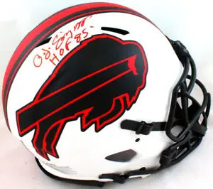 OJ Simpson Autographed Buffalo Bills Lunar Authentic Helmet w/ HOF - JSA W *Red This is an OJ Simpson of the Buffalo Bills hand autographed Riddell Football Full Size Lunar Speed Authentic Helmet. This item is inscribed with HOF. This item has a James Spence Witnessed Protection Authentication, which comes with a numbered sticker and a matching JSA Certificate of Authenticity. You can view this item on the SpenceLOA website and it shows when and where the item was signed. It was signed either at a public autograph appearance or a private signing. This is a stock photo of the item. Although you may not receive this exact item, the item you receive is virtually identical, brand new, and in great shape.