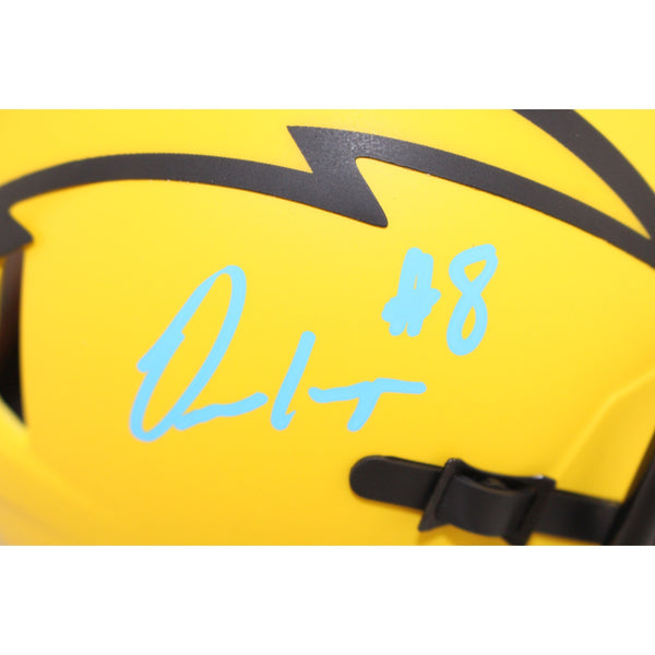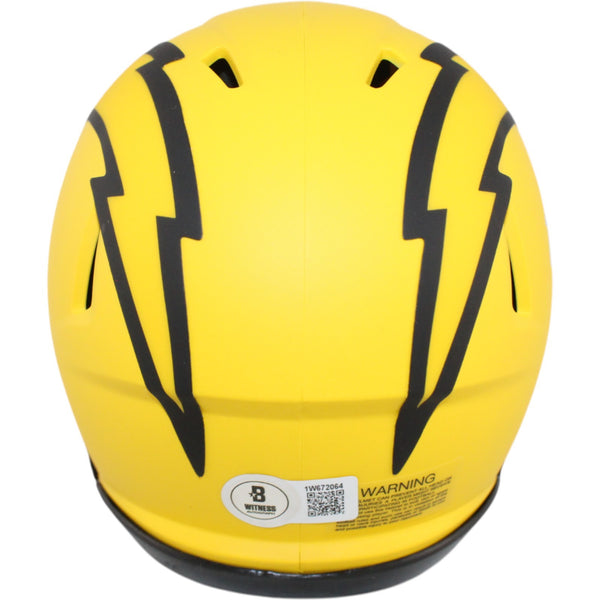 The number in the listing title is just an inventory sku for our records and is not the authentication number. The item pictured is a stock photo unless otherwise noted. This is a Los Angeles Chargers Rave Mini Helmet that was personally autographed by Omarion Hampton. Includes a certificate of authenticity from Beckett Authentication Services (BAS) and Denver Autographs.