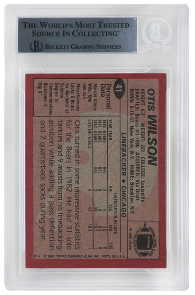 Otis Wilson Signed Bears 1983 Topps Rookie Football Card #41 - (Beckett Slabbed)